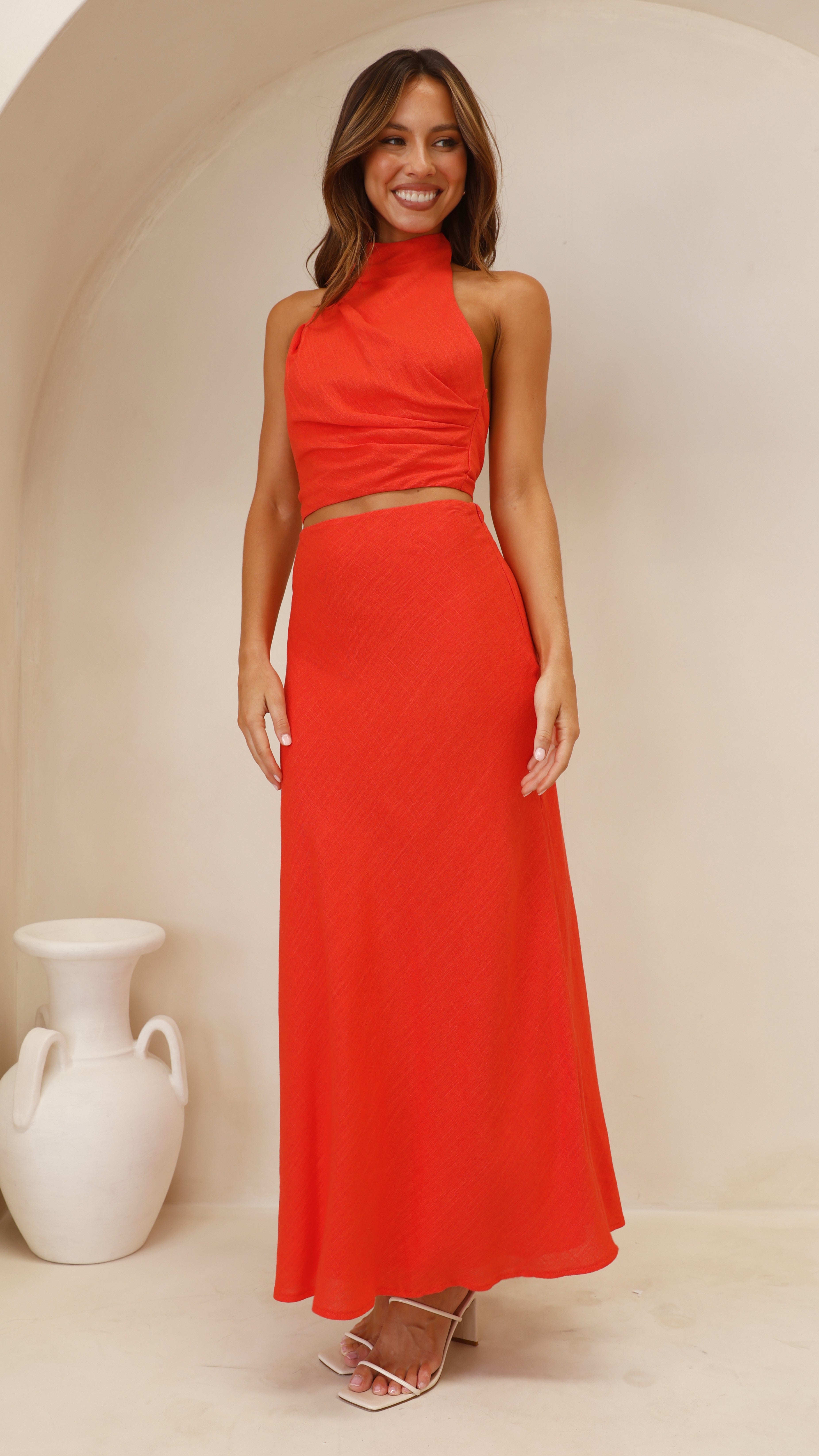 Get the look! Kendall Top - Red &?Chantel Heel - Nude